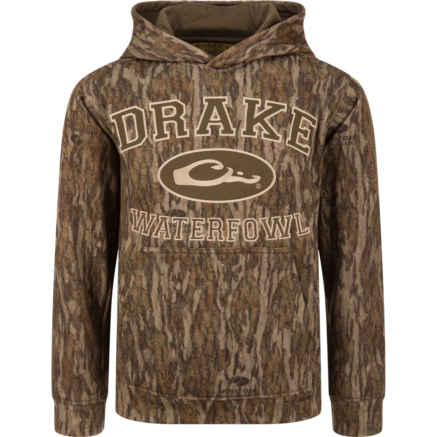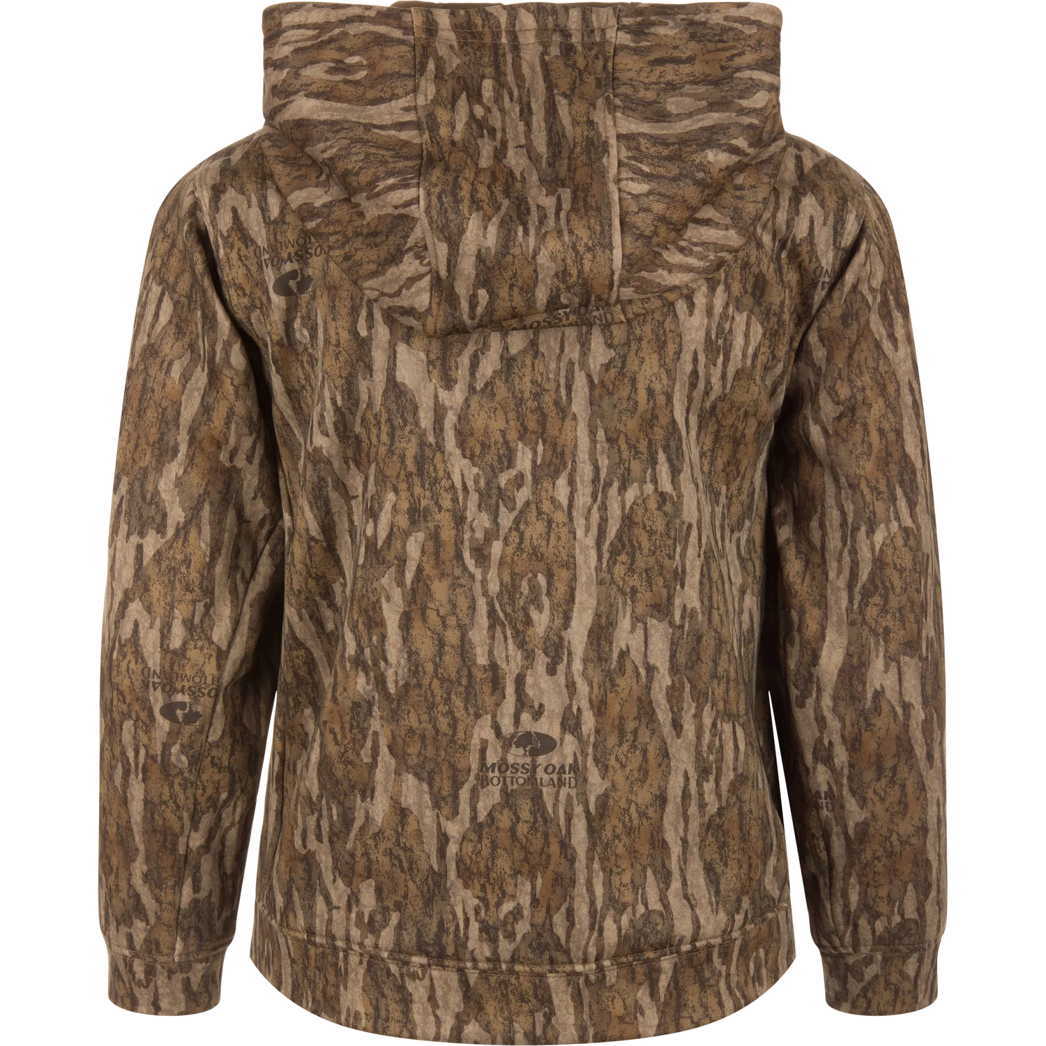 Expertly designed for young athletes, the MST Youth Performance Hoodie offers both comfort and versatility. Crafted with a resilient 7.7oz/260 GSM 92% Polyester/8% Spandex fleece, this hoodie boasts an anti-pilling exterior and built-in stretch for unhindered range of motion. The convenient kangaroo pocket keeps hands warm, and the lined hood ensures head warmth even in harsh environments. Ideal for daily use or outdoor pursuits.